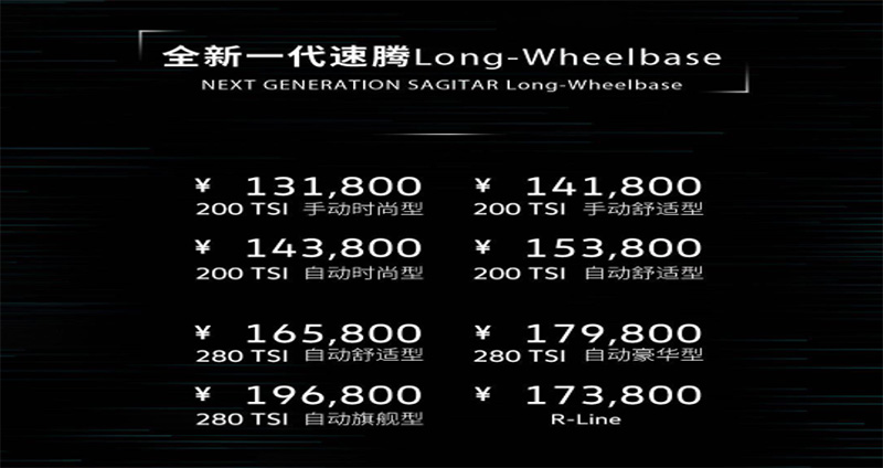 同时主持人还在活动现场为大家揭幕了全新一代速腾Long-Wheelbase惊喜售价。