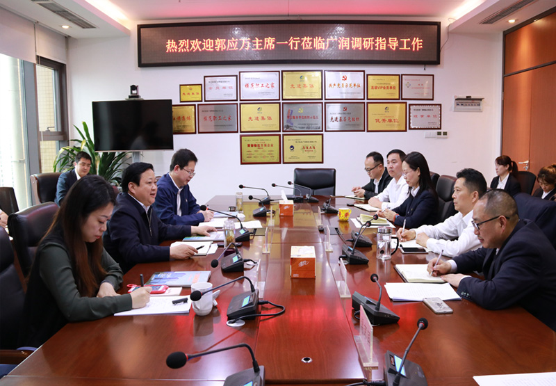 随后,在公司会议室,公司工会主席、财务总监廖伯谦及公司党委副书记、总经理何平分别向郭应万一行汇报了历年来公司工会工作情况和业务发展情况。在听取汇报后,郭应万主席首先对攻坚克难、奋勇拼搏的全体广润职工表示深深的感谢。对公司的业务发展和工会工作成就表示了高度赞许和肯定。郭应万指出,广润公司自2015年成立以来,克服了诸多困难,在短短几年间就取得了辉煌的成就,在国际贸易、供应链管理等方面积累了很好的经验;在铁投集团迈进“世界500强”的战略目标下能够迅速扩张业务板块,为铁投集团的发展做出了巨大的贡献。同时,工会工作卓有成效,充分发挥了党联系群众的桥梁纽带作用,成功凝聚职工智慧力量,有力支撑了公司的业务发展。广润公司是一支站位高、有担当、攻坚克难、能打胜仗、甘于奉献、具有进取精神的队伍。郭应万进一步指出,广润公司在5年的实践中一步一个台阶的不断壮大。在认真践行集团公司迈进“世界500强”的战略目标中,形成了 “用心、责任、学习、进取”的企业文化,这既是广润公司取得优异成绩的动力和源泉,也是支撑广润公司持续健康发展的重要保障。